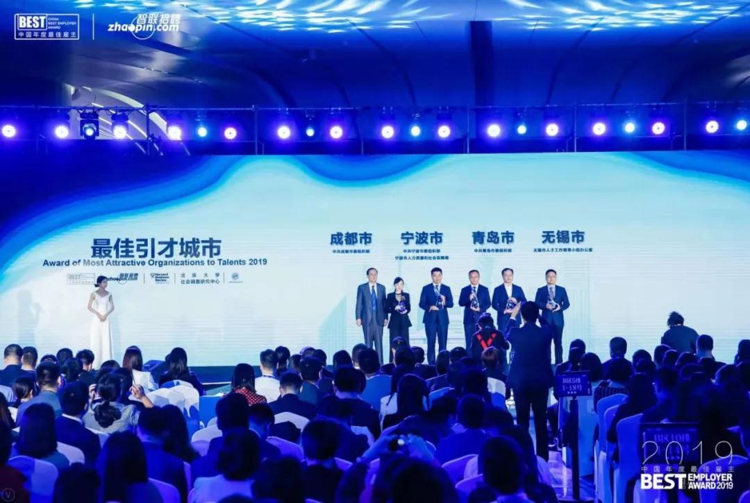 2019年11月29日,在中国年度最佳雇主颁奖盛典上,“2019中国年度最佳雇主最佳引才城市”榜单揭晓,成都市、宁波市、青岛市、无锡市荣耀上榜。这些城市在人才竞争中成绩亮眼,不仅引得来、还能留得住,人才质量也在持续提升。