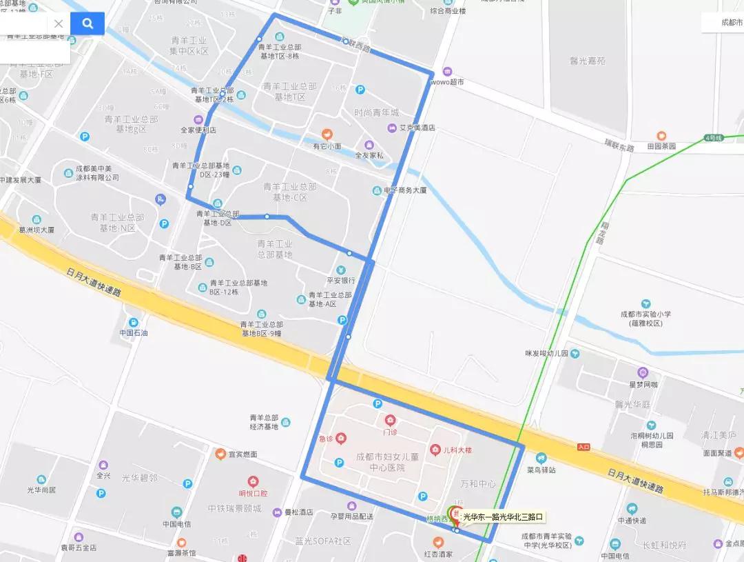 起讫点:光华东一路光华北三路口站—光华东一路光华北三路口站。